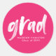 Modern Brush Script Hot Pink Graduation Classic Round Sticker