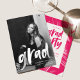Invite guests to celebrate the grad with our photo graduation party invites! The modern graduation party invitations feature the graduate's photo with "grad" in a white brush script overlay. Personalize the front of the photo graduation party invitation by adding the graduate's name, school name, and graduation year. The invite reverses to display your graduation party details with a hot pink and white brush stroke background.
