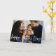 Cute, modern father's day greeting card featuring your favorite family photo on the front with "Happy Father's Day" in a white, hand-lettered brush script overlay. Personalize the front of the father's day card by adding a custom greeting and your name(s). The inside of card features a blue and white plaid pattern on the top with your custom message displayed below.