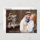 Modern Brush Script Save The Date Couple Photo W Postcard