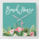 Modern Brush Script Tropical Floral Beach House Square Wall Clock