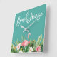 Modern Brush Script Watercolor Tropical Floral Beach House Wall Clock with pink flamingo.