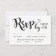 A coordinating RSVP card featuring the bold black brush script "RSVP by" header with attendance response lines and an entree preference section for three meal options on a white background. The calligraphy script meal instructions add an elegant touch to the modern design. All text and meal choices are fully editable.