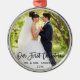 Modern Brush Script Our First Christmas Wedding Photo Ornament - Round