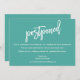 Modern Brush Script Wedding Postponed Teal Card