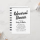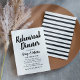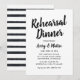 This bold and contemporary rehearsal dinner invitation leads with oversized brush script typography in striking black on white. The clean, unadorned layout puts the focus squarely on the event — perfect for modern couples who love a strong typographic statement. A bold black stripe pattern on the reverse adds an extra design touch. All names, dates, and event details are fully editable.