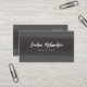 These modern and professional business cards feature a sheer, black watercolor brush stroke on a dark grey background. Your name appears in bold, modern white script. A scannable QR code is on the back so you can add your social media account or website.