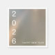Celebrate the New Year with these stylish faux brushed metal napkins. The stylish custom text is editable. The brushed metal is not real but only a gradient metallic look. The year 2026 written in editable minimalist font is displayed down the left side. "Happy New Year" written in elegant modern typography can be customized to your own words, names, or business name if desired. These would be great for a New Years Eve Party, or a New Year's Eve dinner, or a simple elegant celebration. The brushed metal is in a copper bronze tone. Modern, trendy, simple elegance to ring in the New Year. See collection for matching personalized glassware.