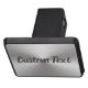 You can edit the dark grey script to show your custom message. The brushed metal look is an artistic rendering.