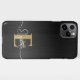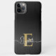 Modern Brushed Metallic Black Gold Monogram Script iPhone Case