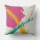 Modern Brushstrokes - Pink, Teal & Yellow on Cream Throw Pillow
