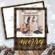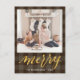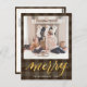Send customizable and personalized holiday greetings to friends, colleagues and family in simple, chic, elegant and modern photo design festive, natural minimalist style cards! A beautiful golden calligraphy of " merry " frames on bottom of your photo in front. Below the calligraphy features your custom greeting message from your family name in modern typography. Reverse to reveal a beautiful dark brown plaid pattern background.