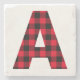 A modern block letter red and black buffalo plaid letter A monogram.