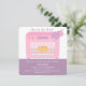 An elegant, modern and whimsical baby shower invitation that has a bun baking in a pink oven. A purple mitten is getting ready to take the bun out of the oven. Reverse page is that of a purple and white polka dots pattern. Pink and purple colour palette makes this suitable for moms expecting baby girls. Personalise easily with your party details.