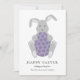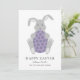 Celebrate Easter with this adorable Easter bunny cuddling a purple spotted egg. Add your family names and a personalized Easter holiday greeting to this simple elegant fun Easter rabbit spring holiday greeting card. Modern minimalist rabbit artwork created by artist Catherine Sweetman.