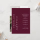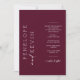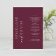 This invitation features modern typography giving a clean and simple block serif typography with a burgundy background. The simplicity and clean design of this invitation works well with all wedding themes and definitely a great addition to your wedding.