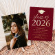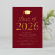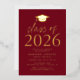 Invite guests to celebrate the grad with our modern class of 2025 graduation party invites. The invites feature a graduation cap at the top with "Class of 2025" displayed in gold foil lettering with a burgundy background. Personalize the invites by adding the graduate's name, school, and graduation party details. The gold foil graduation party invites reverse to display the graduate's photo.
