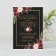 Modern Burgundy Floral Black Gold Photo Wedding Invitation