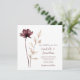 Modern wedding invitation with inspirational quote scripture depicts an elegant floral watercolor botanical minimalist design with a simple burgundy wild flower and cream coloured leaves. It features a Christian Bible Verse introduction from Ephesians 5:31, "Two shall become One." The back features Bible Verse Song of Solomon 3:4, "I have found the one my soul loves." If there is something you don't see or if you would like changes please contact me with the chat button on the Zazzle page.