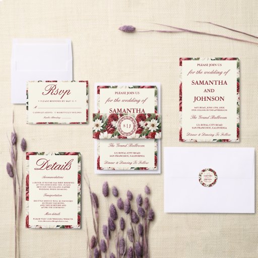 Modern Burgundy Vintage Ivory Floral Wedding SuiteDesigned by persisruth shiny