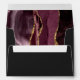 The inside of this elegant modern wedding invitation envelope features a burgundy watercolor agate design trimmed with faux gold glitter. Customize the back flap with the names of the bride and groom in gold coloured handwriting script and return address in copperplate font on an off-black background.