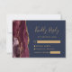 Modern Burgundy Gold Agate Navy Blue Wedding RSVP Card