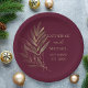 Modern Burgundy Gold Leaf Wedding Monogram Paper Plate