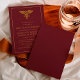 Modern, elegant, and stylish burgundy and gold RN/nursing school graduation party invitation with a caduceus. Contact me for assistance with your customizations or to request additional matching or coordinating products for your celebration.