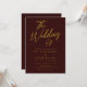 Modern Burgundy & Gold Script Wedding Invitation