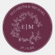Modern Burgundy Leafy Crest Monogram Wedding Classic Round Sticker