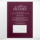 We're loving this trendy, modern burgundy Trifold invitation simple, elegant, and oh-so-pretty, it features a hand drawn leafy wreath encircling a modern wedding monogram. It is personalized in elegant typography, and accented with hand-lettered calligraphy. Finally, it is trimmed in a delicate frame. To remove meal choices in the RSVP section, we have created a how-to video for you here: https://youtu.be/ZGpeldQgxoE. A Wedding Details contains extra details like, driving directions, reception information, hotel information, etc. This can also include your wedding website including provision for a map (via screen capture) has been included, and even your favourite engagement photo on the back! Veiw suite here: