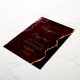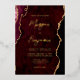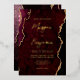 This elegant wedding invitation features a background image of burgundy red watercolor agate trimmed with faux gold glitter. The customizable text combines gold-coloured modern handwriting, copperplate and italic fonts. The reverse side features a coordinating burgundy and gold agate design.