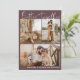 Modern simple red burgundy and elegant brush script with 6 photos collage grid wedding engagement announcement, better together script typography.
