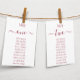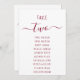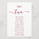 In the upper part, there is the table number written in a handwriting script and the word Table above, in smaller caps (hand letters). Under them, there are the 10 guest names, in similar hand letters. All text is burgundy (deep red), the background is white.