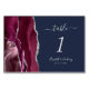 Modern Burgundy Silver Agate Navy Blue Wedding Table Number