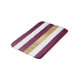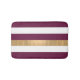 Chic bath mat done in a contemporary bold striped pattern, in burgundy / wine, white and gold tone. Matching bathroom products are available. Comes in three sizes.