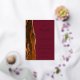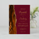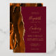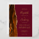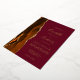 The left-hand edge of this elegant modern wedding invitation features a burnt orange watercolor agate border trimmed with faux gold glitter. The customizable text combines handwriting, copperplate and italic fonts in real gold foil on a burgundy background. The reverse side features a matching burnt orange and gold agate design.