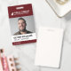 A modern employee id badge. The design features your business logo, business name and tag line. It shows a large sized employee id photo. Information can be personalized and includes the employee's name, job title and badge ID number. The back of the ID badge shows the business logo and name.