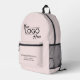 Professional blush pink backpack for your business that features your logo. Add your business name, slogan, website, socials or other text in simple modern typography on the front pocket. You can change the colours of the backpack and text to your brand colours by editing in the design tool.
