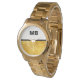Luxury men's modern wristwatch in gold white and black with monogram initials you can personalize and make your own. Includes gold coloured background graphic that coordinates with the gold coloured watch casing for a professional finished look. Designed for business or personal use for men.