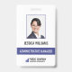 A modern business ID badge featuring the photo, name, occupation of a staff member. The modern employee ID also includes the business name and logo of the company. The colour of any design element of this staff ID badge can be personalized.