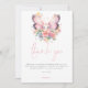 Modern Butterfly Florals Baby Shower Thank You. Available digitally and printed. A cute butterfly peeking through florals is at the top and ann elegant modern set script for Thank You. Easily personalise the rest of the words as required. A coordinating pink is on the back which you can change to another size if you wish via edit further.