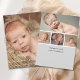 The elegant and minimalistic design of the baby boy birth announcement card features your beautiful newborn baby boy with a full photo on the front and a 4 photo collage on the back. Vertical card format. Personalize the modern calligraphy script in black lettering with the baby's full name and customize the remaining text with all the important birth stats.