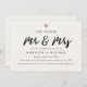 This minimal engagement party invite shines through its simplicity. Elegant Hand-drawn script reads "The Future Mr. and Mrs" alongside your personal celebration details in modern typography. Above sits a delicate faux rose gold heart.
