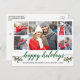 Modern Calligraphy Script 5 Photo Couple Photo Collage Happy Holidays Postcard includes Watercolor Christmas Holly Berries