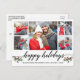 Modern Calligraphy Script 5 Photo Couple Photo Collage Happy Holidays Postcard includes Watercolor Christmas Holly Berries