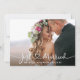 Modern Calligraphy Script Heart Just Married Wedding Photo Announcement Card