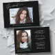 Trendy, modern and elegant, 2 photo graduation announcement cards, featuring design elements of modern text with calligraphy ink script. The graduate's photos, front and back, are artfully accented with a delicate & minimalist gradient boarder. The back of the card offers personalized text spaces for information about your graduation. Black & White or easily customize the background to match your school's primary colour or any colour of your choice. Perfect for the high school, college and university grad student.