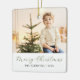 Modern Calligraphy Merry Christmas Photo Ceramic Ornament