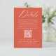 Add a vibrant touch to your wedding suite with this QR code wedding details enclosure card, featuring "Details" in elegant white calligraphy on a warm Verona sunset-orange background. Ideal for weddings in any season and suitable for both formal and casual celebrations, this modern design lets couples share essential details such as reception information, hotel accommodations, and their wedding website in bold white lettering. The card includes a convenient QR code, allowing guests to quickly access the couple's wedding website for additional information. Stylish and practical, this enclosure card is the perfect complement to your wedding stationery.